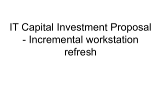 Solution: Considering IT recommendations as outlined in the IT Capital Investment Proposal - Incremental workstation refresh (excepting the IT Capital Investment Proposal - Purcellville Lower Building Networking), accept Recommended - Solution #1.
