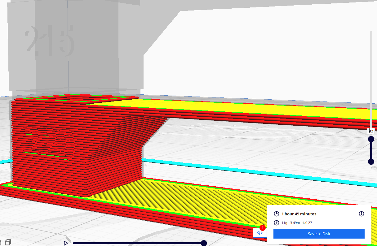 On the left side of the model you will see temperature numbers starting at 220 and decreasing by 5 on each new segment until reaching 180. This is the typical range for PLA. There are other temperature towers for other materials.